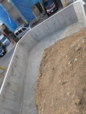 調布市の現場では、新築住宅に向けた擁壁工事が順調に進んでいます。