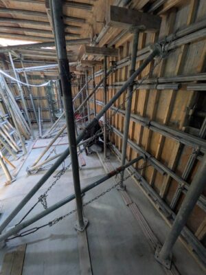 内部では型枠支保工が組まれ、着実に施工が進んでいます。